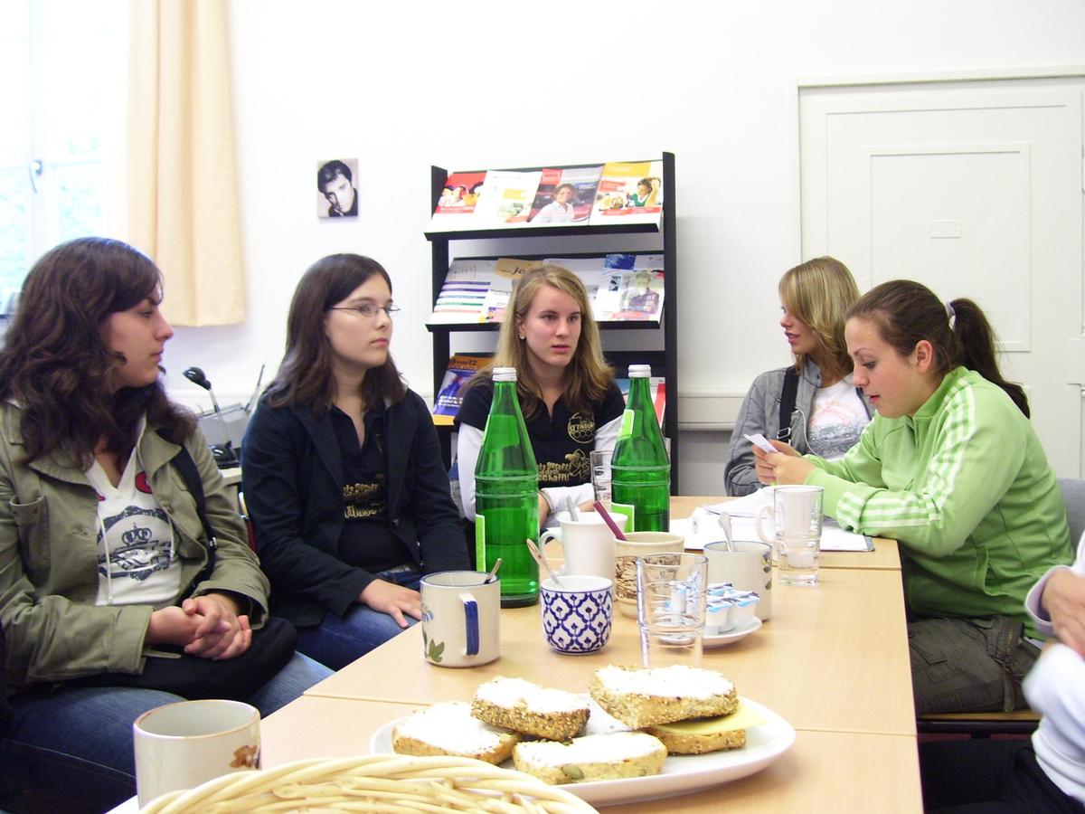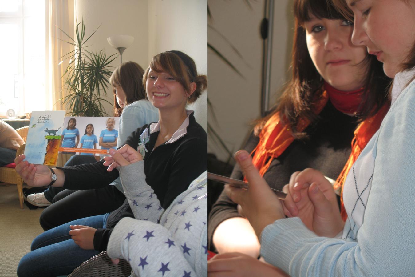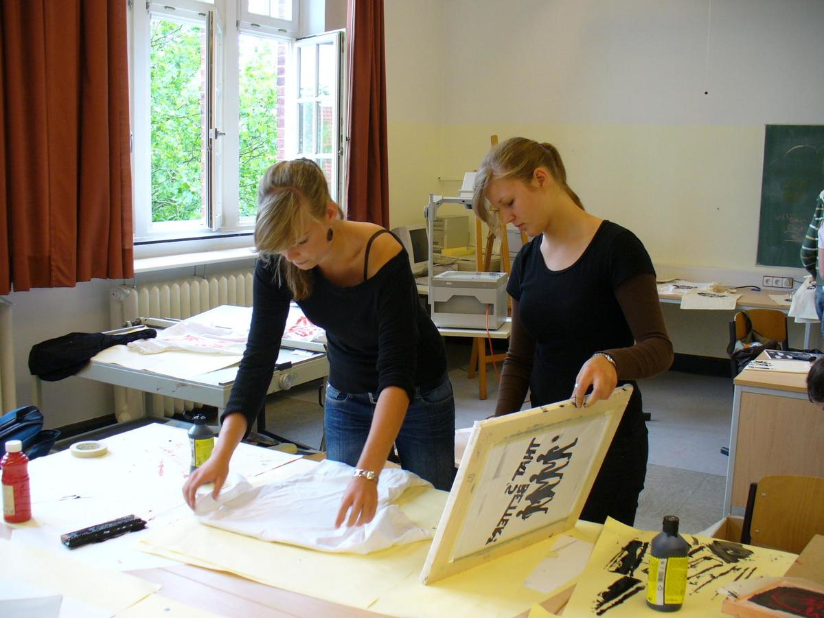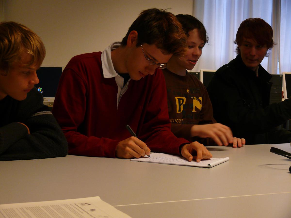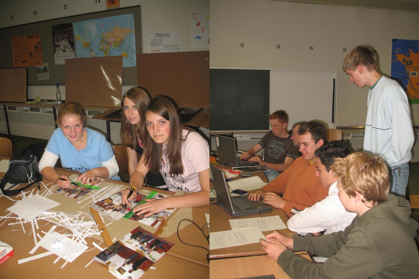 Am Donnerstag trafen wir uns um 8 Uhr um zu besprechen welche Teams welche Workshops fotografieren sollten. Dann zogen wir los. Erst wurde höflich gefragt und dann eifrig geknipst. Etwas später wurden die besten Fotos am Laptop ausgewählt und zum Copyshop gebracht.  Die gedruckten Bilder wurden in Team arbeit ausgeschnitten und aufgeklebt. Kleine Texte zur Erklärung wurden ebenfalls geschrieben. Auf Plakaten in Rahmen kann man sie in im Flur im Sekretariat anschauen. Außerdem wurden die Fotos ausgewählt, die man nun hier im Internet anschauen kann. Zu jeder Gruppe gibt es auf dieser Seite 2 Bilder.